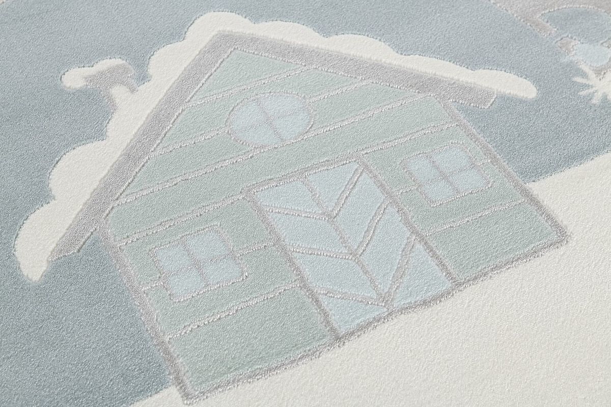 Luxusní šedo-modrý koberec se motivem domečku v skandinávském stylu od německé společnosti LIVONE do dětského nebo studentského pokoje. Vlastnosti:- příjemný na .. več