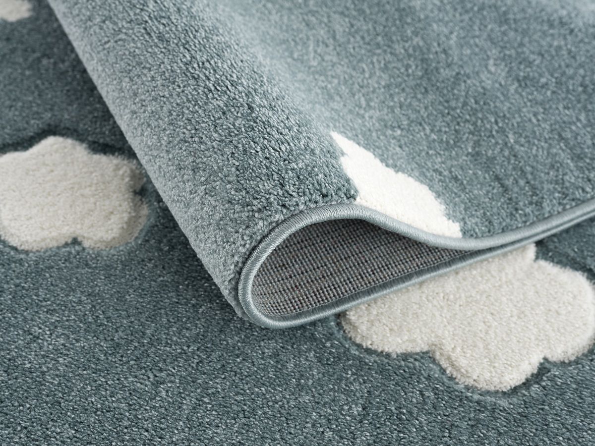 Luxusní šedo-mátový koberec s bílými obláčky od německé společnosti LIVONE v rozměre do dětského nebo studentského pokoje. Vlastnosti:- příjemný na dotek- .. več