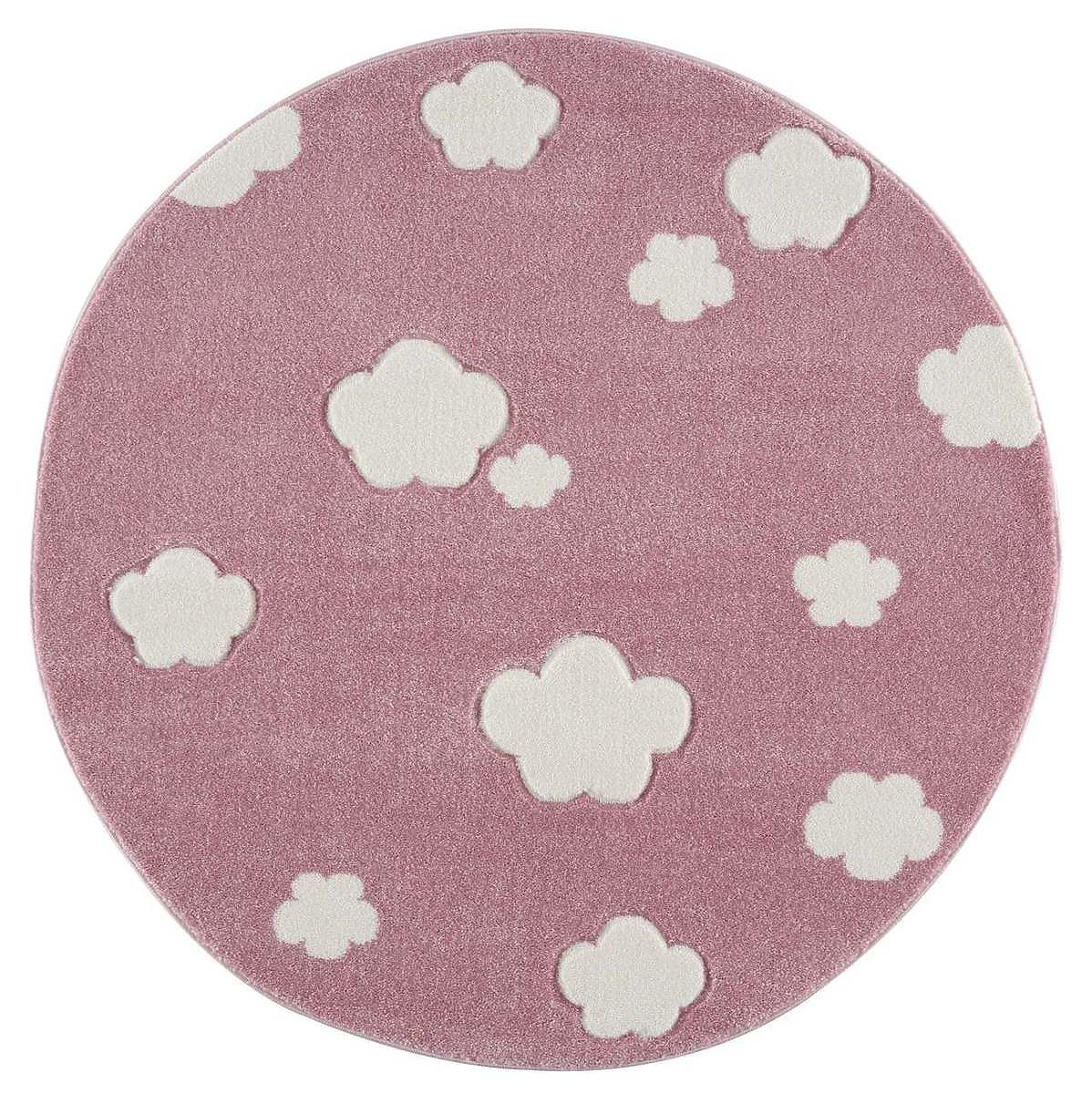Luxusní kulatý růžový koberec s bílými obláčky od německé společnosti LIVONE do dětského nebo studentského pokoje pro holky.