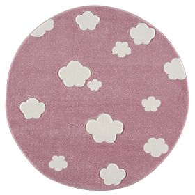 Luxusní kulatý růžový koberec s bílými obláčky od německé společnosti LIVONE do dětského nebo studentského pokoje pro holky. Vlastnosti:- příjemný na dotek- .. več