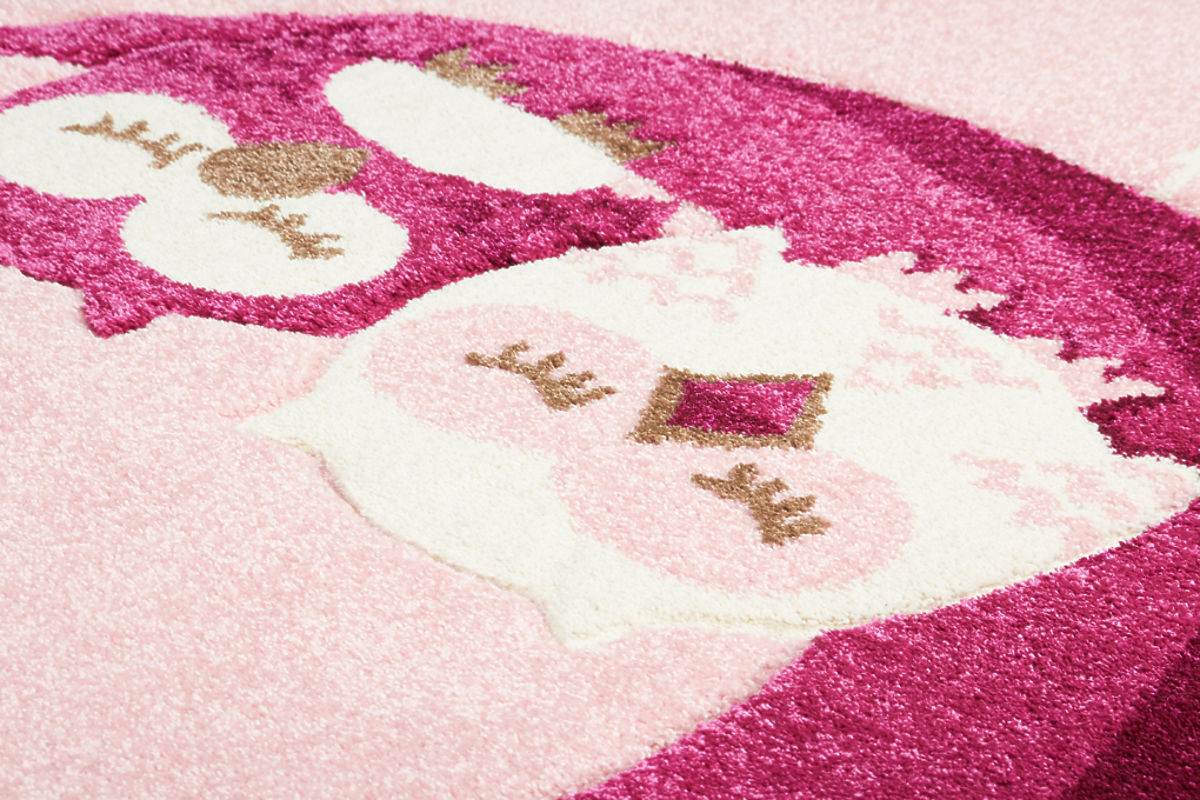 Dětský koberec je v příjemné růžové barvě, doplněn o krásně barevné sovičky. Vzhledem k barevnému provedení si jej zamilují zejména holčičky. Hodí se také do studentských pokojíčků.