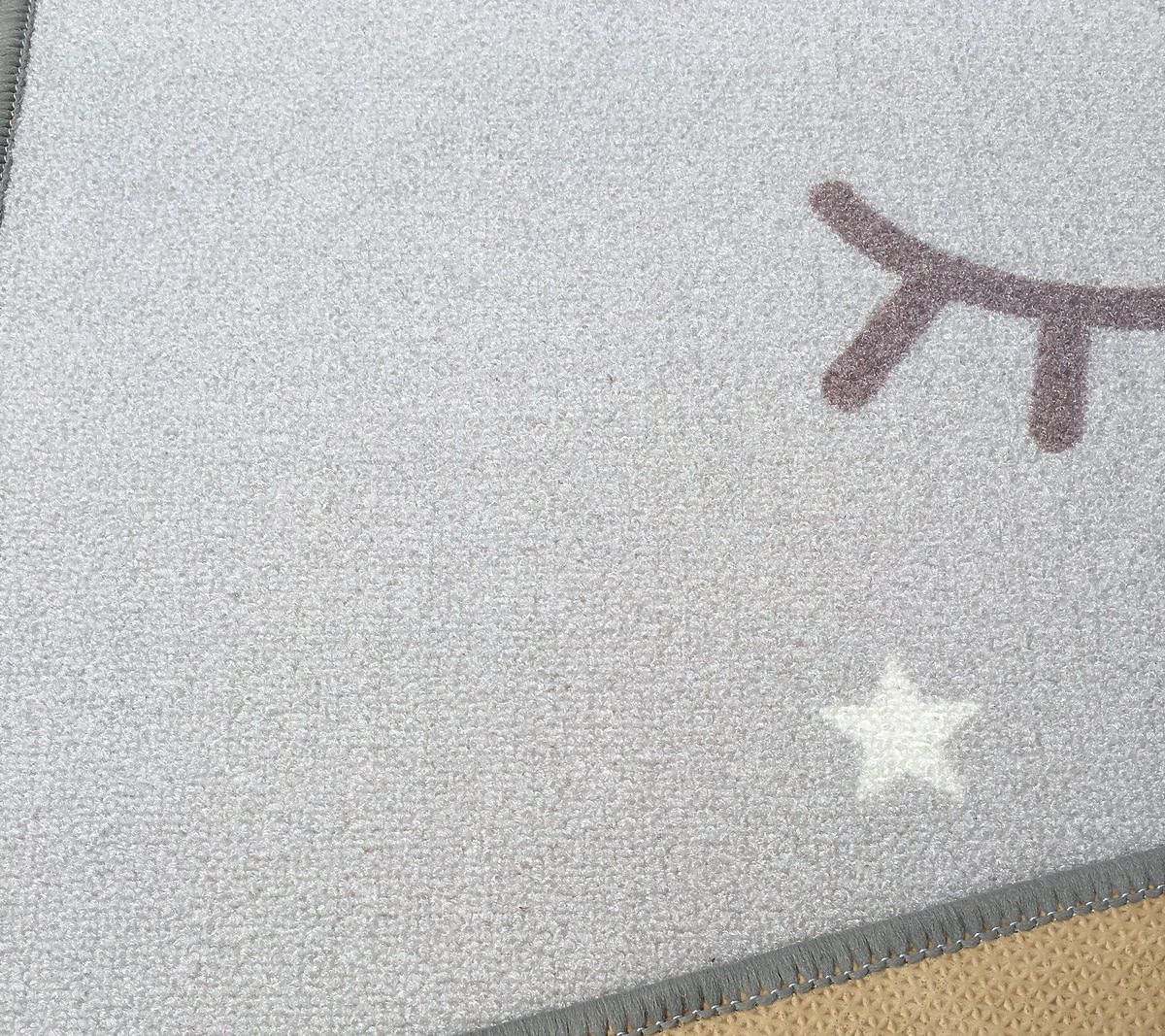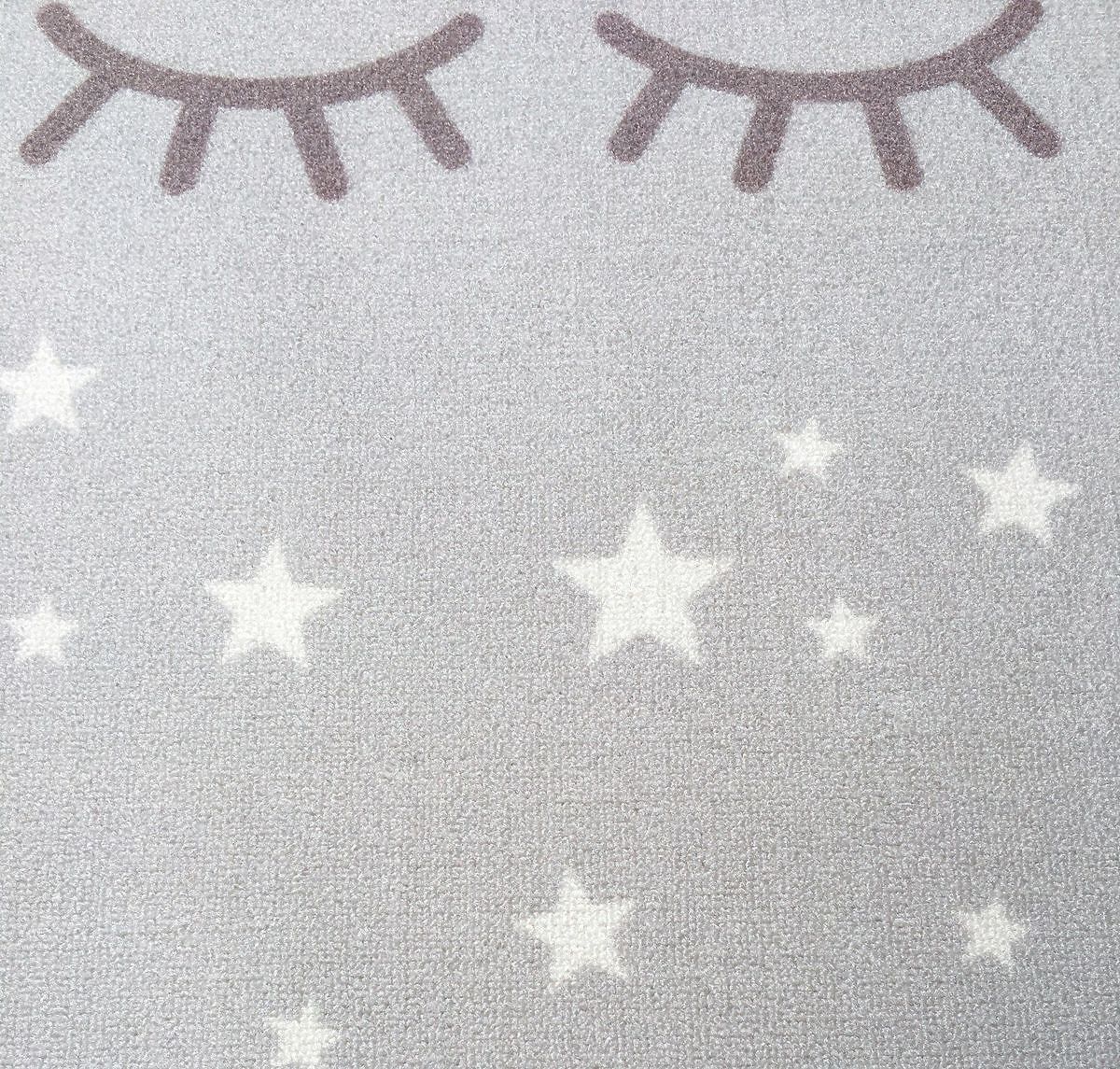 Luxusní šedý koberec s motivem spících oček od německé společnosti LIVONE si zamiluje každý člen rodiny.