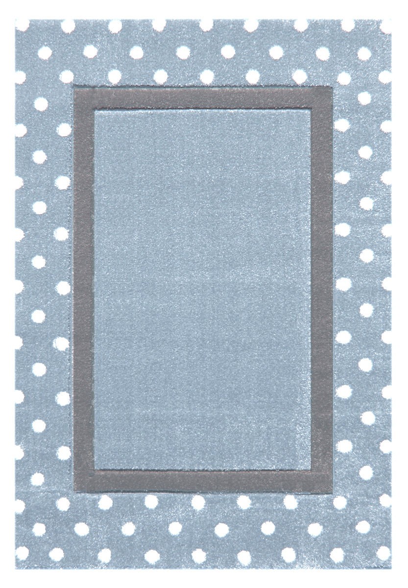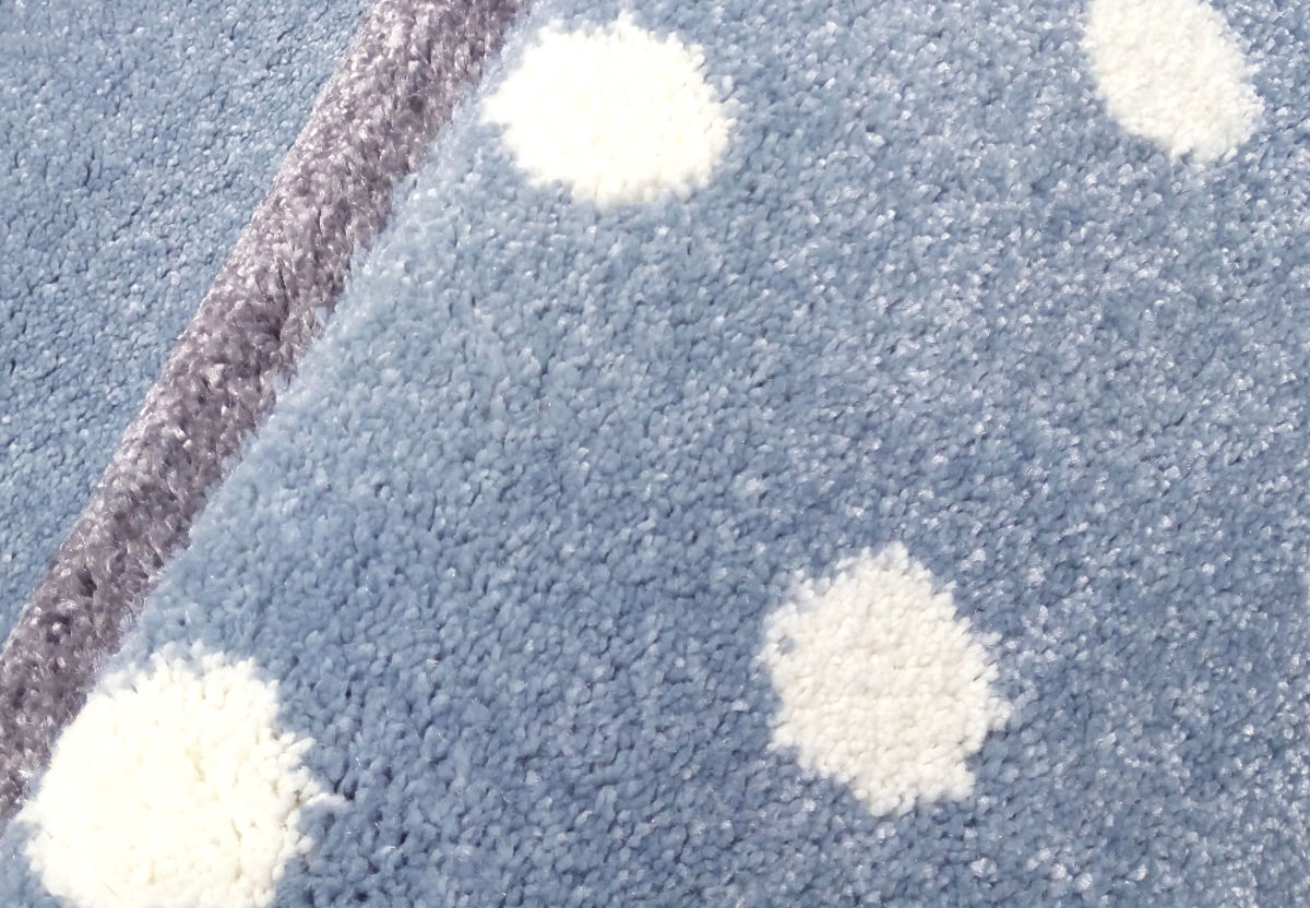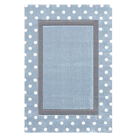 Dětský koberec má příjemný modrý základ a na něm najdete stříbrno - šedý obdélník a tečky, které koberec doladí a dotáhnou k dokonalosti. Svým vzhledem se hodí do všech interiérů, do chlapeckých i dívčích pokojíčků. Své místo najde také ve studentském pokoji.