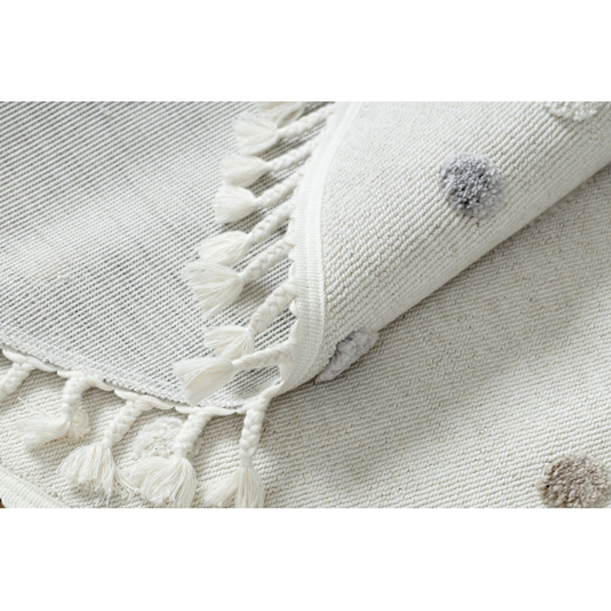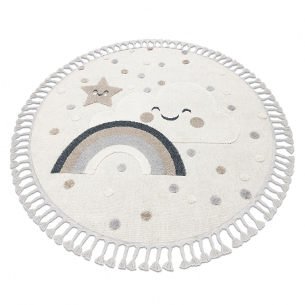 Banaby.si » Pohištvo / Preproge / Preproge / Preproge / Okrogla preproga YOYO EY78 bela / bež - Oblak, Mavrica, pike za otroke, strukturna, senzorična resic