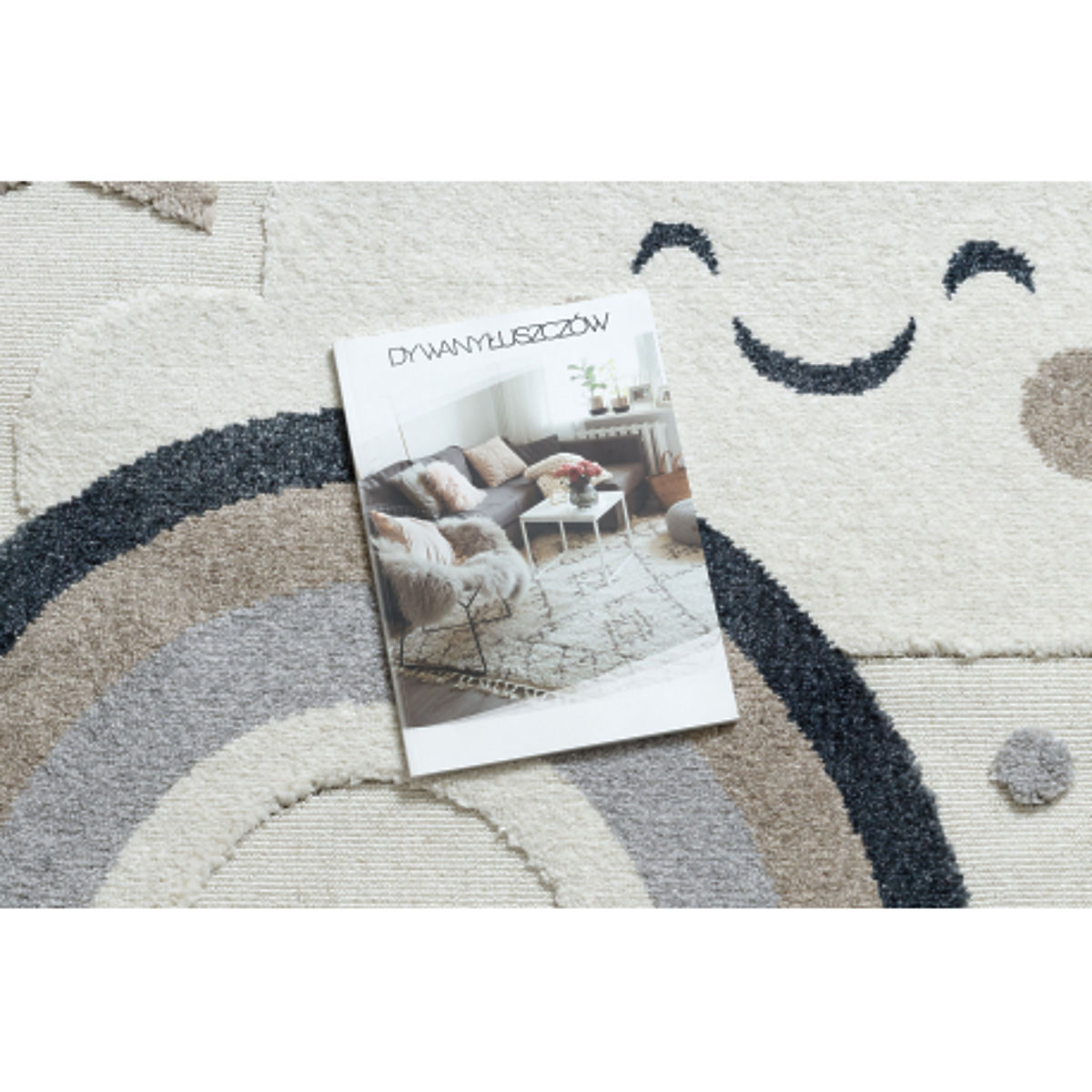 Okrogla preproga YOYO EY78 Oblak, mavrica in pike je odličen dodatek otroškim sobam, ki združuje igrivost in senzorično stimulacijo. Bela osnova z bež detajli ustvarja nežen, pomirjujoč in moderen videz, primeren za različne interiere.
