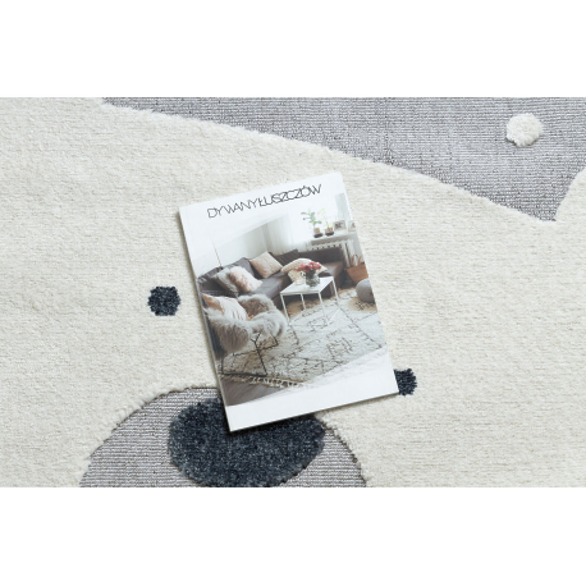 Banaby.si » Pohištvo / Preproge / Preproge / Preproge / Okrogla preproga YOYO EY81 sivo / bela - Medved, gore za otroke, strukturna, senzorična resice