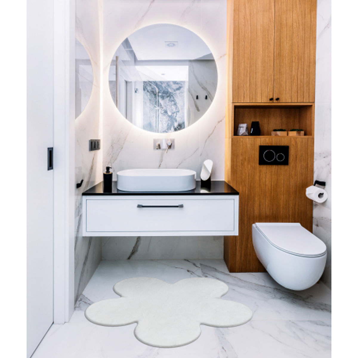 Banaby.si » Pohištvo / Preproge / Preproge / Preproge / Pralna preproga SHAPE 3106 Cvet Shaggy - slonokoščena plišasta, protizdrsna