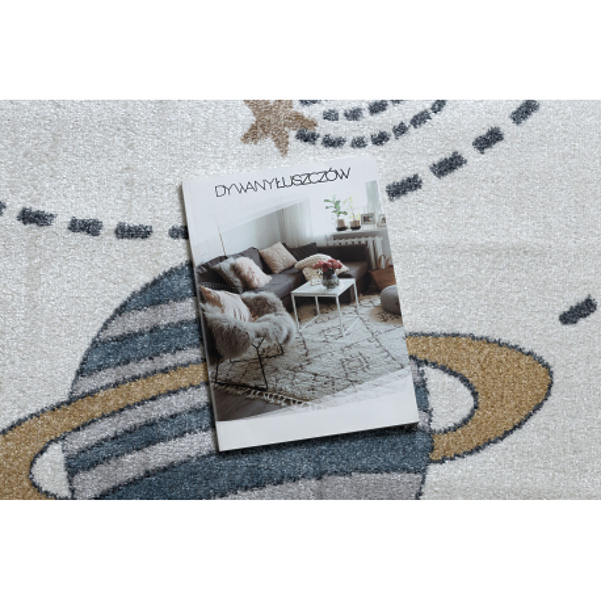 Pravokotna preproga BONO 8288 Prostor in planeti bo v otroško sobo prinesla vesoljsko atmosfero, polno domišljije in odkrivanja. Kremna podlaga v kombinaciji z antracitnimi detajli ustvarja moderen in vizualno privlačen videz, ki se zlahka prilega različnim interierjem.