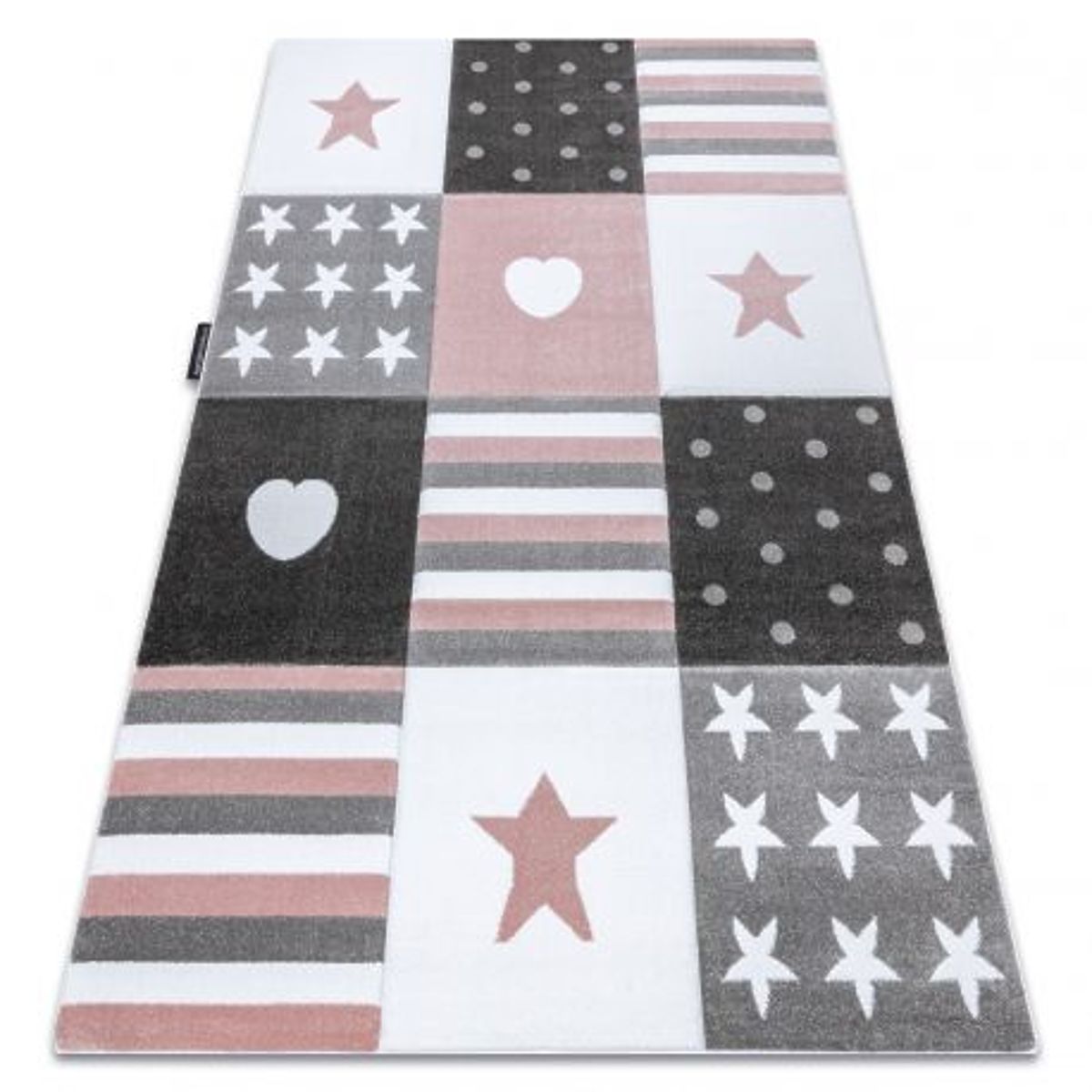Roza preproga z motivom srčkov in zvezdic za otroško sobo. .. več