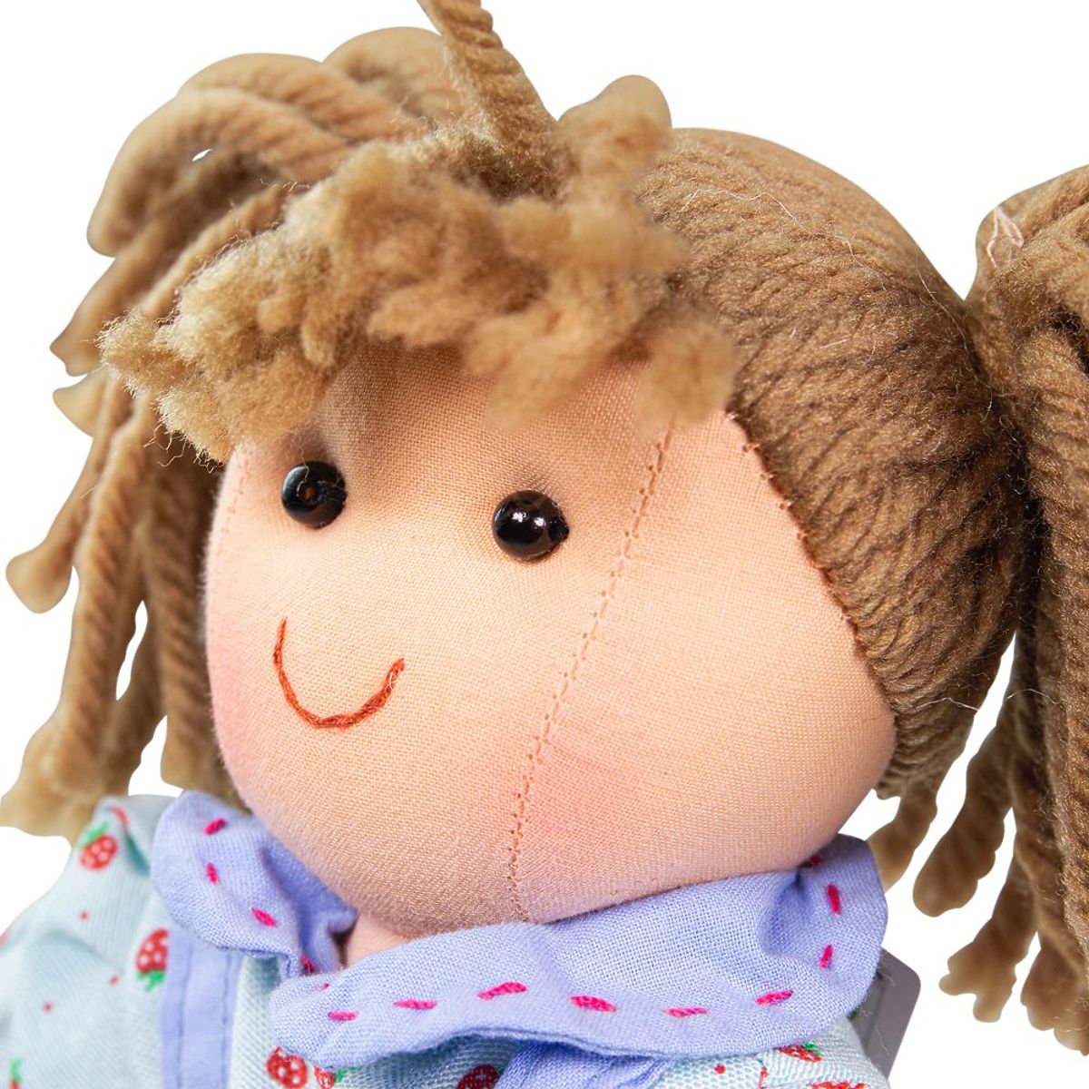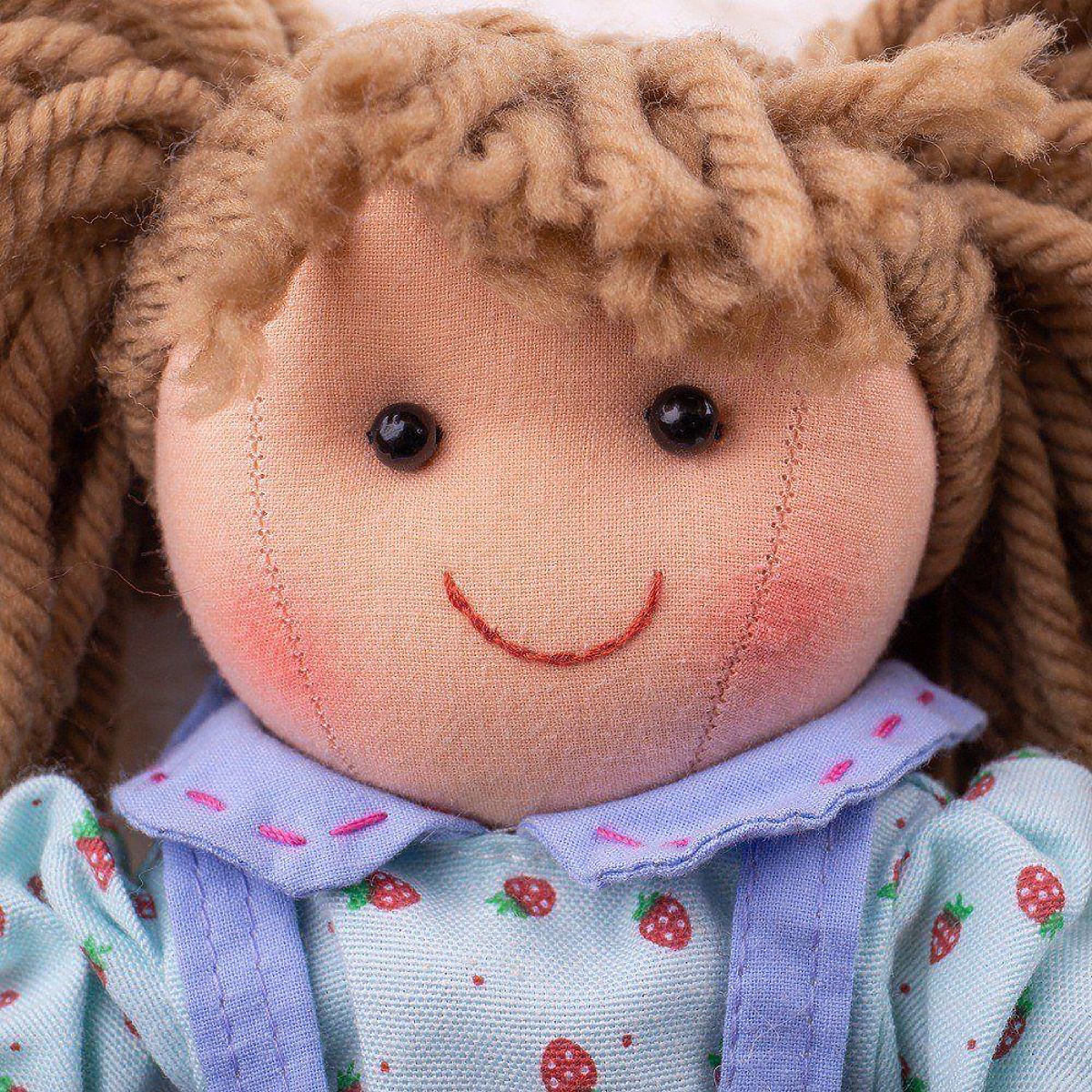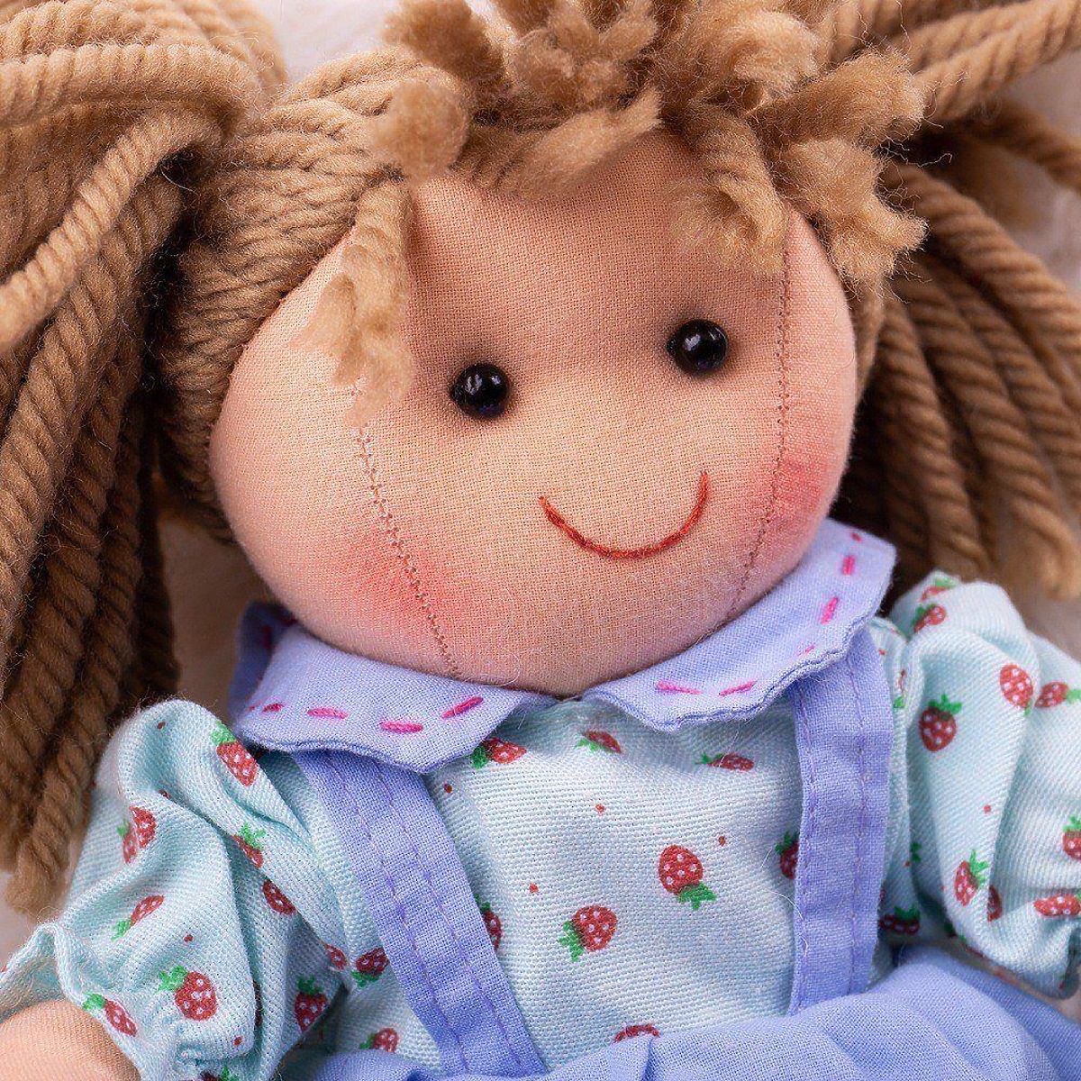 Spoznajte Grace - veselo, pisano, tkanino punčko, s katero se bo vaš otrok zagotovo rad igral. Punčka je oblečena v kakovostna oblačila v lepem, svetlo modrem dizajnu z vzorcem rdečih jagod. Mehke tkanine punčke so odličen način za spodbujanje ustvarjalne igre. Glavne lastnosti: varno mehko telo igra s punčko razvija fino motoriko in sposobnost pomagati, skrbeti za punčko Bigjigs Toys je mogoče dokupiti oblačila v ustrezni velikosti primerno že od rojstva ustreza trenutnim evropskim varnostnim standardom