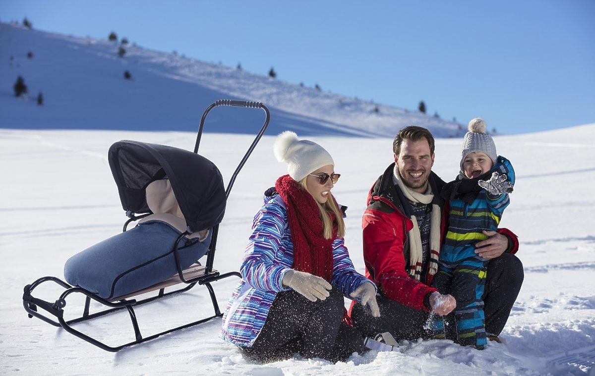 S temi sanmi lahko uživate v snežni zabavi tudi tja, kamor s klasičnim vozičkom ne pridete. Vključuje izolirano torbo v barvi jeans/melange , ki bo vašega otroka ohranila topla in suha v vsakem vremenu.