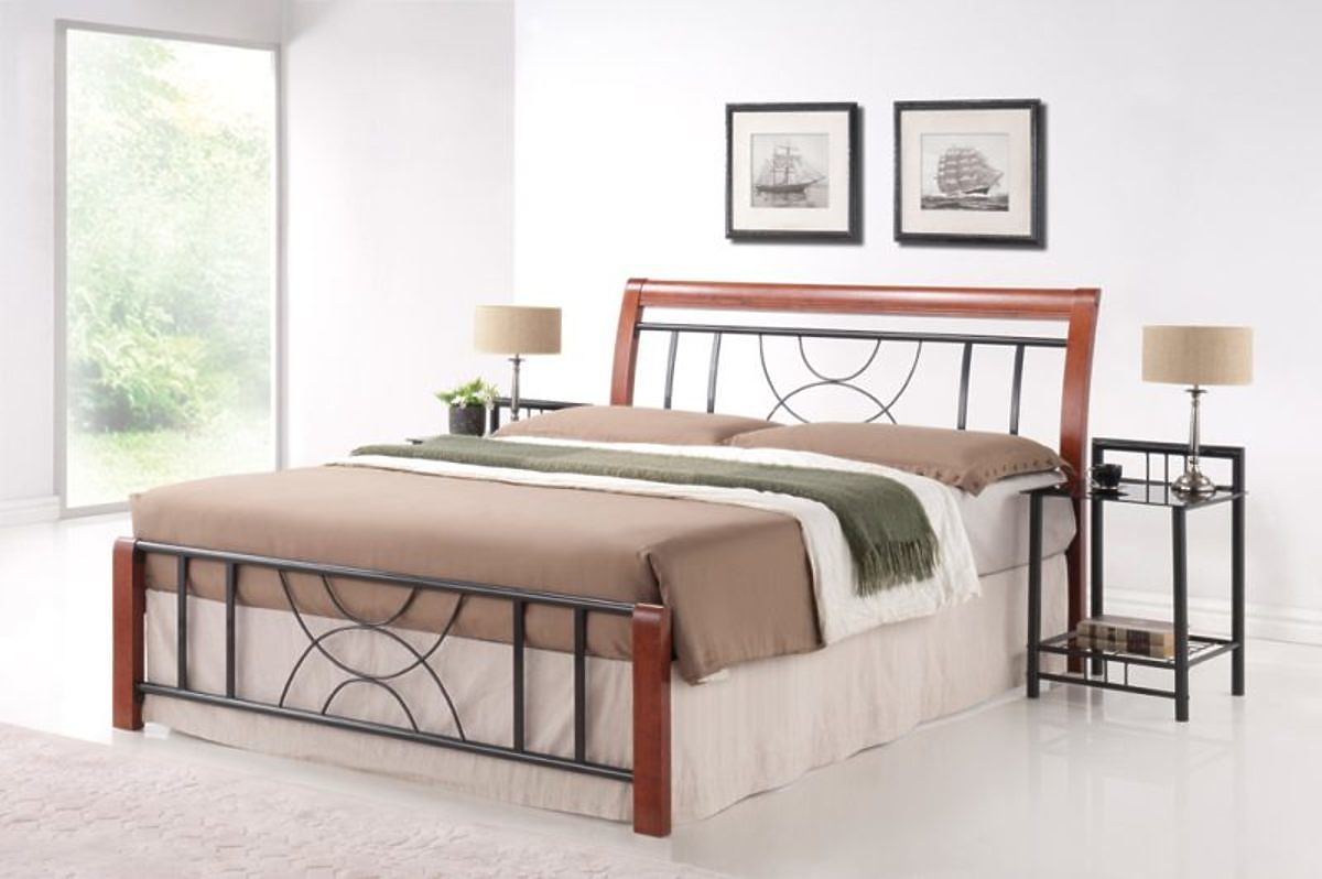 Provedení postele je v černém kovu s kombinací masivního dřeva v barvě antická třešeň. V ceně postele je započítán rošt. Spací plocha postele je 180x200 cm. Matrace není součástí postele je třeba si ji doobjednat, doporučujeme rozměr 180x200cm.