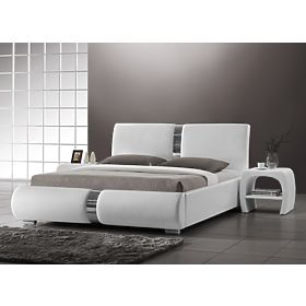 Postel z eko kůže tvoří kvalitní dřevěná konstrukce, s lamelovým roštem doplněna kovovými a pochromovanými doplňky.