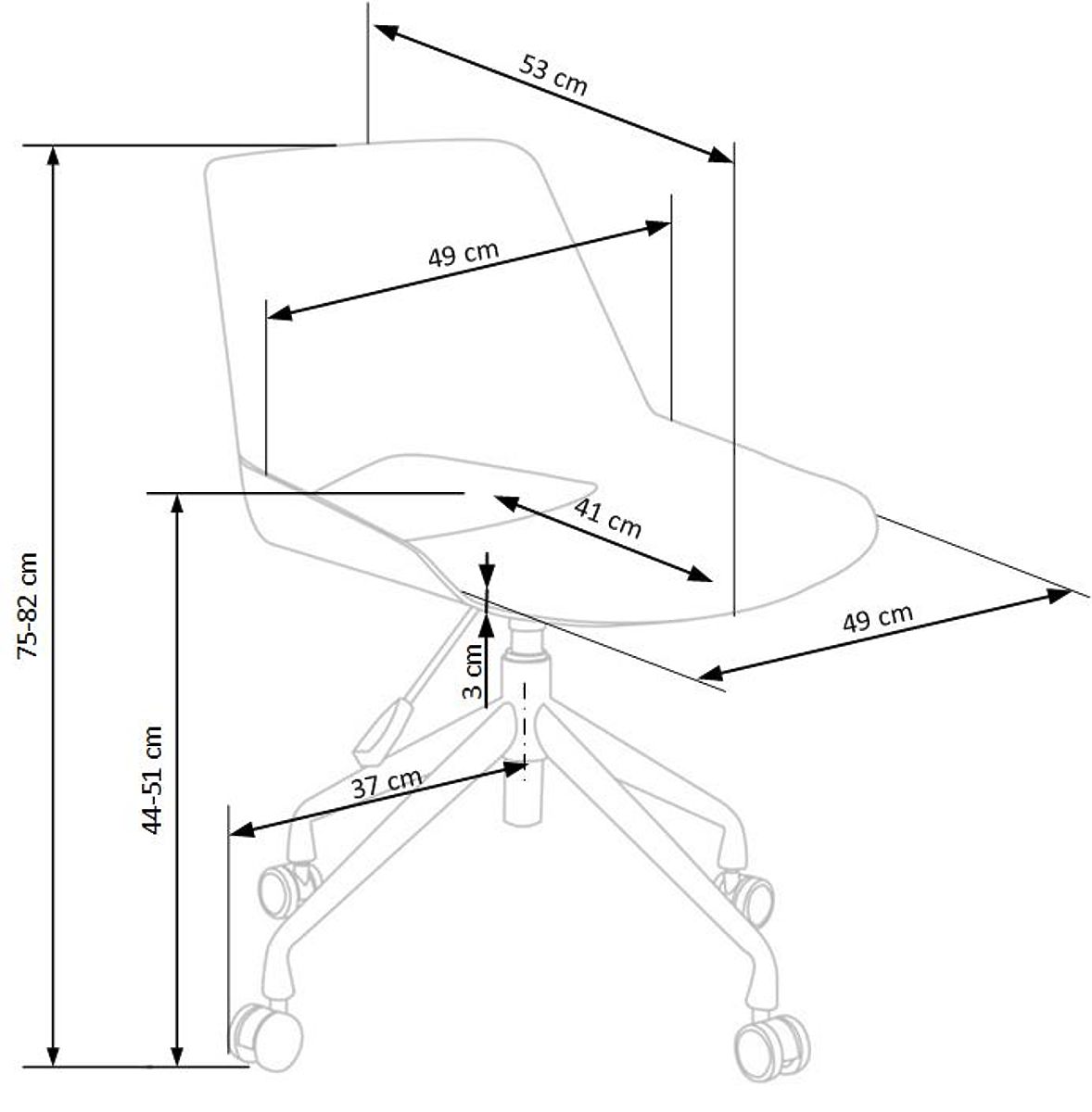 Stol je opremljen z osnovnim mehanizmom, ki omogoča prilagoditev višine sedeža glede na potrebe uporabnika, zaradi česar je primeren tako za otroške sobe kot pisarne.