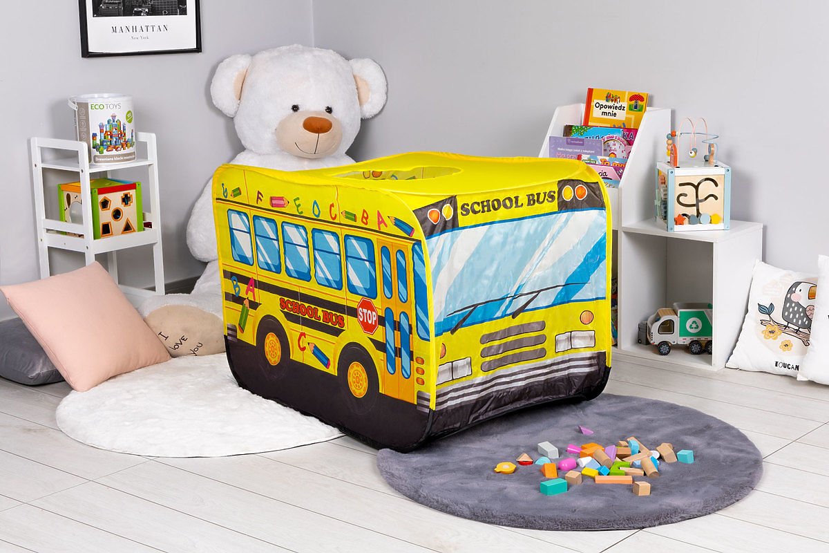 Šotor daje vašim otrokom priložnost, da doživijo nepozabno zabavo doma in na prostem, na primer na vrtu. Živahne barve in grafika avtobusa bodo očarale vsakega otroka in naredile zabavo še bolj zanimivo.