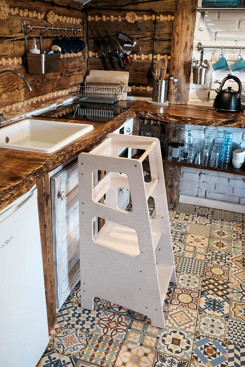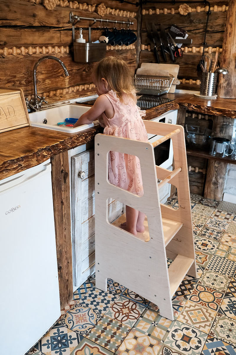 Otroški učni stolp montessori Hugo MAXI 90 je zanesljiv in praktičen pomočnik, ki razvija kreativnost, motorične sposobnosti ter pozitivno vpliva na celostni razvoj in socializacijo otroka.