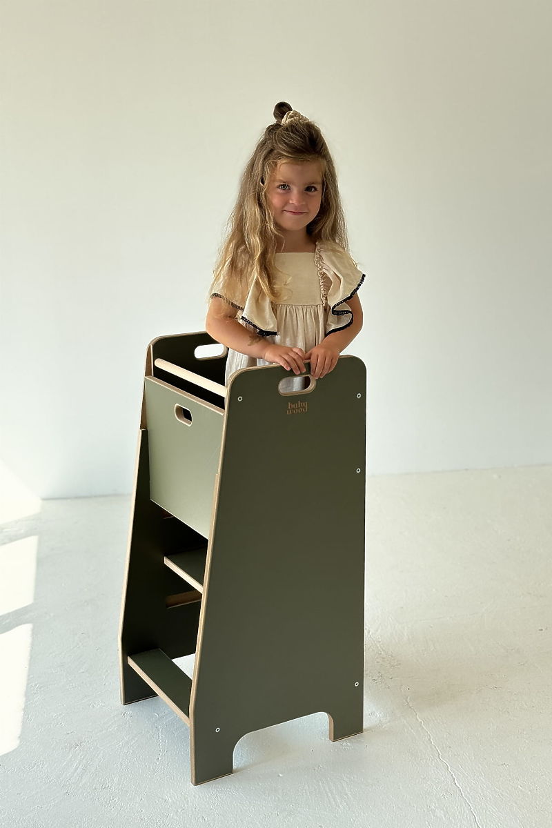 Učna stolp Comfort je premišljen kuhinjski pomočnik, ki otrokom omogoča varno stati na pravi višini in se aktivno vključiti v vsakodnevne kuhinjske aktivnosti. Stabilna zasnova in zaprta konstrukcija staršem zagotavljata, da je otrok med kuhanjem na varnem, obenem pa spodbujata njegovo samostojnost. S tem pomočnikom postane kuhinja prostor skupnega odkrivanja, učenja in zabave. Otroci lahko pomagajo pri enostavnih opravilih in postopoma pridobivajo nove veščine na naraven in igriv način.
