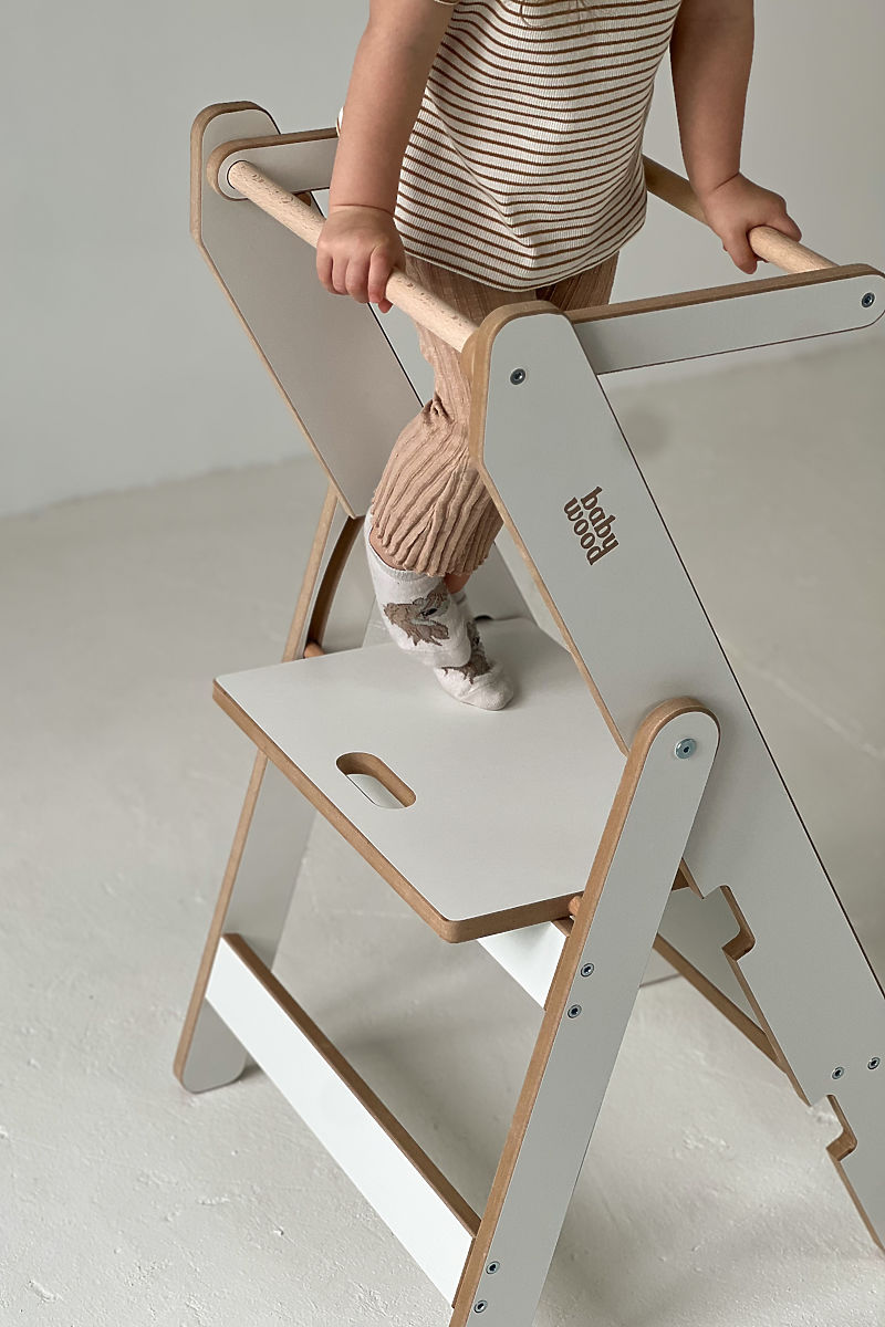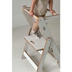 Stilni zložljiv učni stolp v beli barvi je idealen pomočnik za starše, ki želijo svojim otrokom omogočiti aktivno sodelovanje pri vsakodnevnih domačih opravilih in odkrivanju sveta okoli sebe. Ta stolp podpira otroško kreativnost, samostojnost in motoriko ter tako prispeva k celotnemu razvoju osebnosti in socializaciji. Zaradi zložljivega mehanizma je stolp enostavno shranljiv in prenosljiv, primeren za manjše prostore.