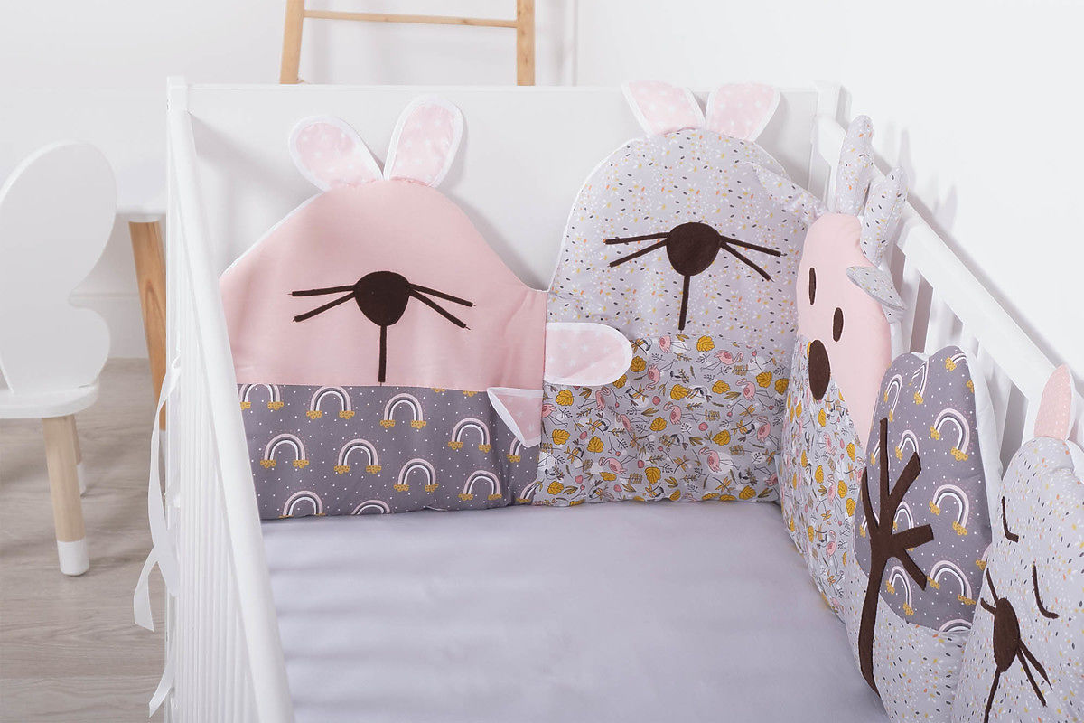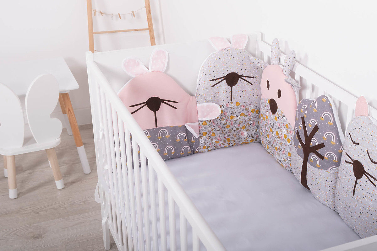 Banaby.si » Posteljnina / Zaščitne obloge za posteljice / Modularna zaščitna ograja za posteljico Flowers - sivo-roza