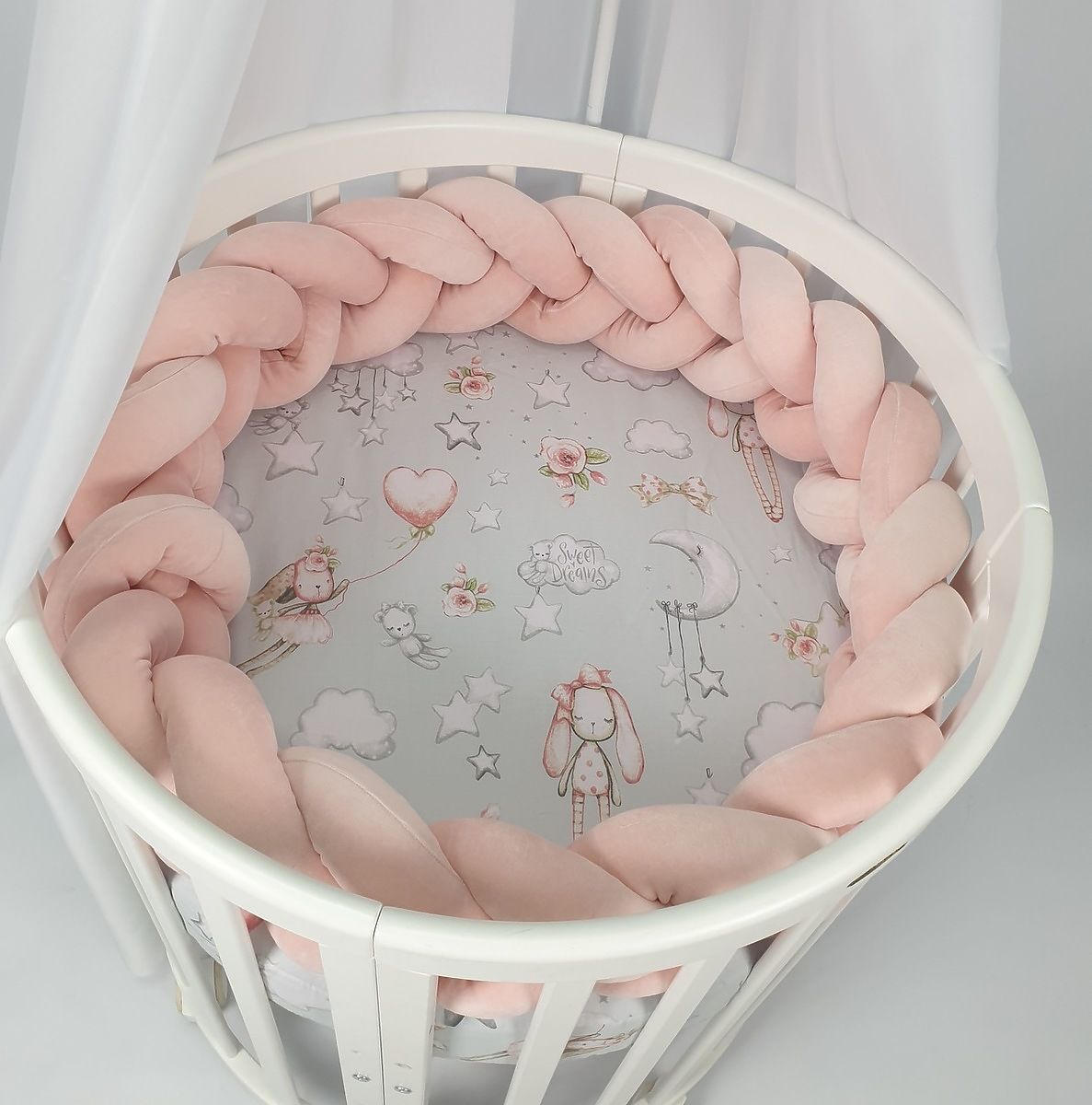 Staro roza pleteni zaščitni trak je moderen, stilski dekorativni element za vsako otroško posteljico. Zagotavlja varnost med gibanjem dojenčka v posteljici.