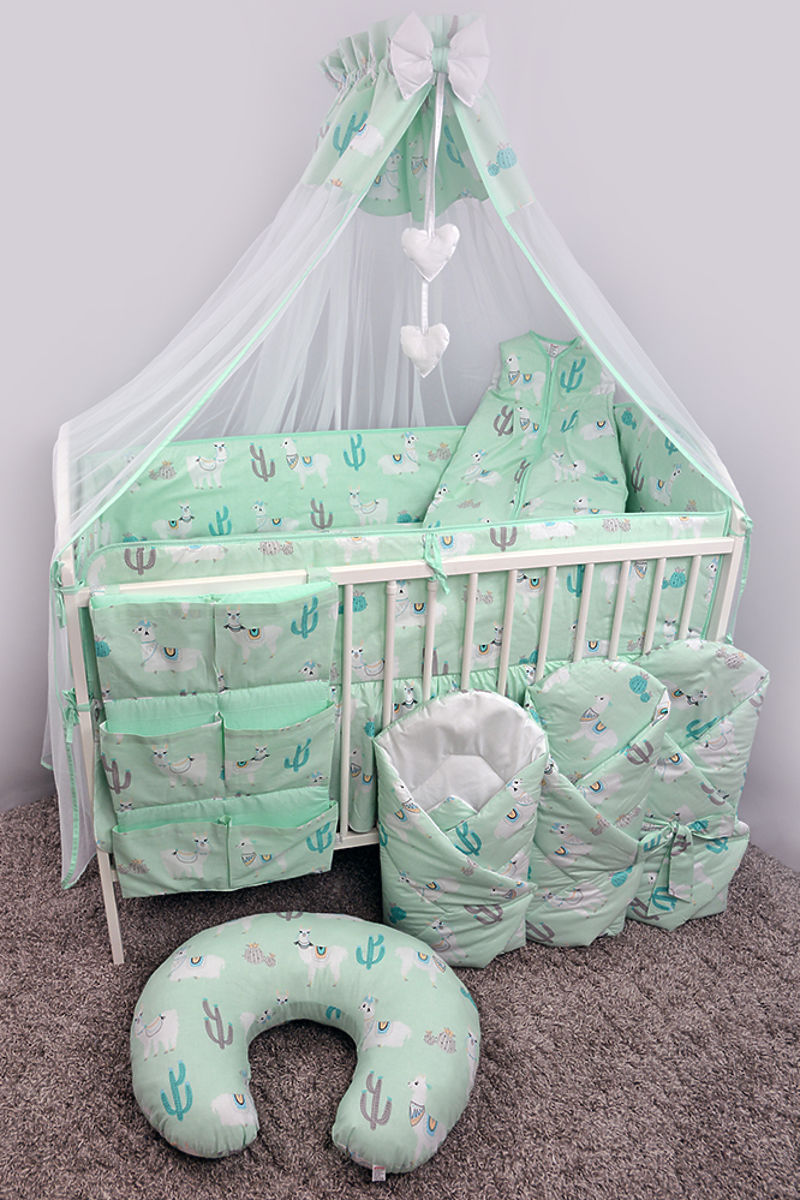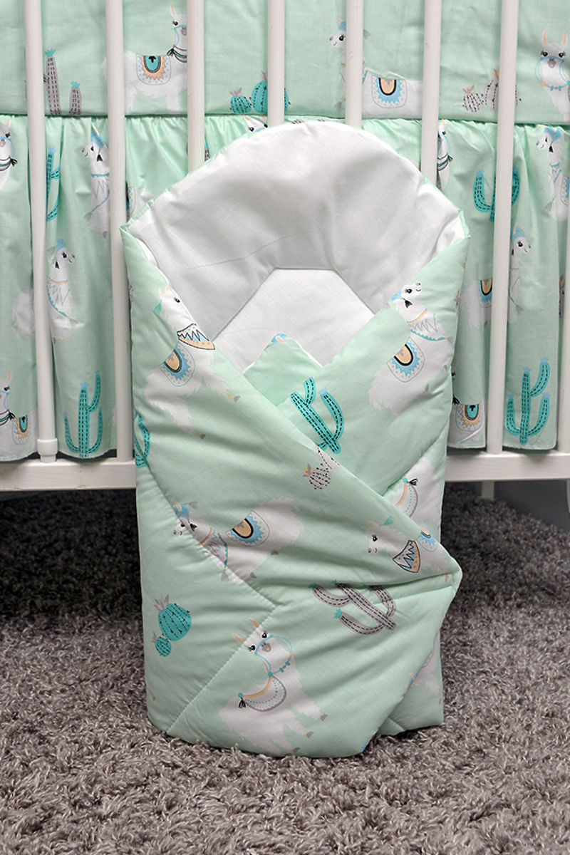Krásná zavinovačka pro miminko s motivem oblíbených Lam. Mátové provedení působí velmi příjemně a půvabně.